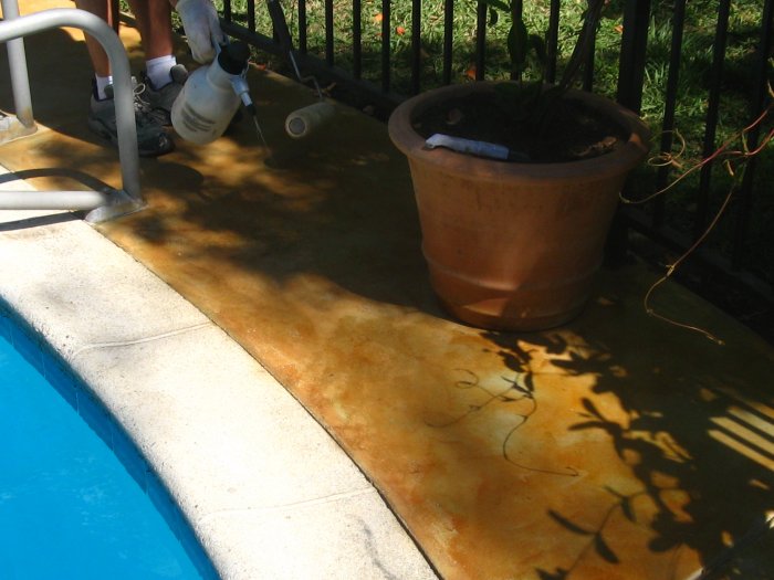 Concrete is not just for your driveway anymore. Thanks to new products and techniques, we can customize any concrete surface to reflect your mood or design ideas. With the use of different types of acid (acid staining of concrete) and solvent based stains and dyes we can transform the look of your slab. Micro toppings, used with coloration products of various types can re-surface rough or deteriorating concrete inside or out.